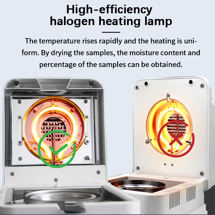 ল্যাবরেটরি এবং ফ্যাক্টরির জন্য 0.001g রেজোলিউশন হ্যালোজেন ময়েশ্চার মিটার সিই সার্টিফাইড